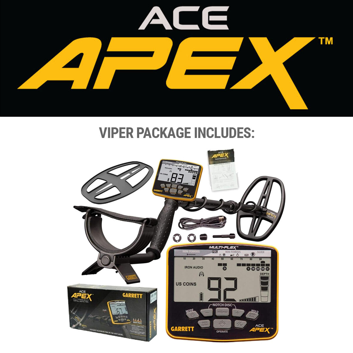 THE GARRETT ACE APEX Detector with 6"x11" DD VIPER coil* and coil cover